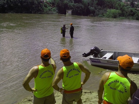 Segundo os bombeiros de Santa Maria, o rio estava muito cheio, o que dificulta o trabalho de resgate, hoje outra equipe de mergulhadores procuram na Praia do Paredão.