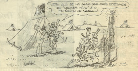 Charge do cartunista Sampaulo que satiriza o natal dos militares americanos durante a primeira Guerra do Golfo (1990/91)